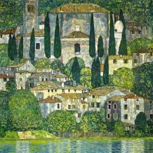 • Church In Cassone – Landscape With Cypresses by Gustav Klimt