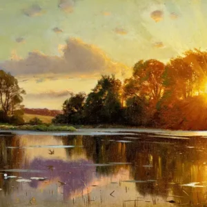 • Sunset at Orholm (1896) by Peder Mørk Mønsted