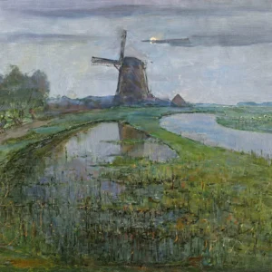 • Oostzijdse Mill along the River Gein by Moonlight (c. 1903) by Piet Mondrian