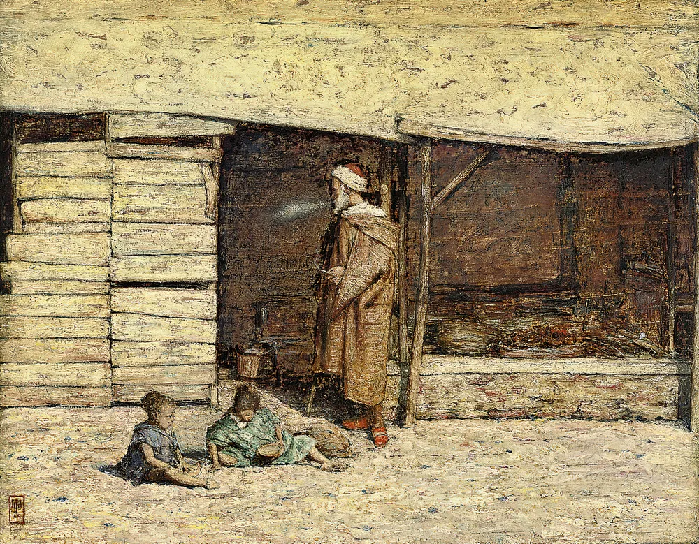 A Stall at Tangiers by Mortimer Menpes is offered as an illustration fine art print from England in our 14 x 11 format. This piece brings classic gallery character to wall decor, with the artwork prepared for a refined canvas presentation.