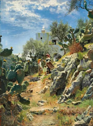 • At Noon On A Cactus Plantation In Capri (1885) by Peder Mørk Mønsted