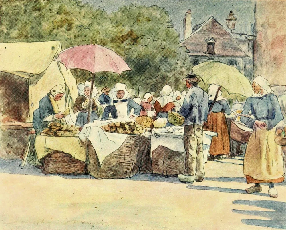 Brittany 1912 – Bread stalls by Mortimer Menpes