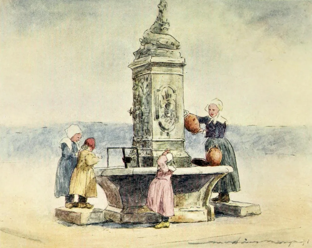 Brittany 1912 – Concarneau, at the fountain by Mortimer Menpes