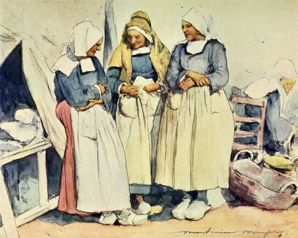 Menpes, Mortimer (1855-1938) – Brittany 1912 – Gossips by Mortimer Menpes is offered as an illustration fine art print from England in our 14 x 11 format. This piece brings classic gallery character to wall decor, with the artwork prepared for a refined canvas presentation.