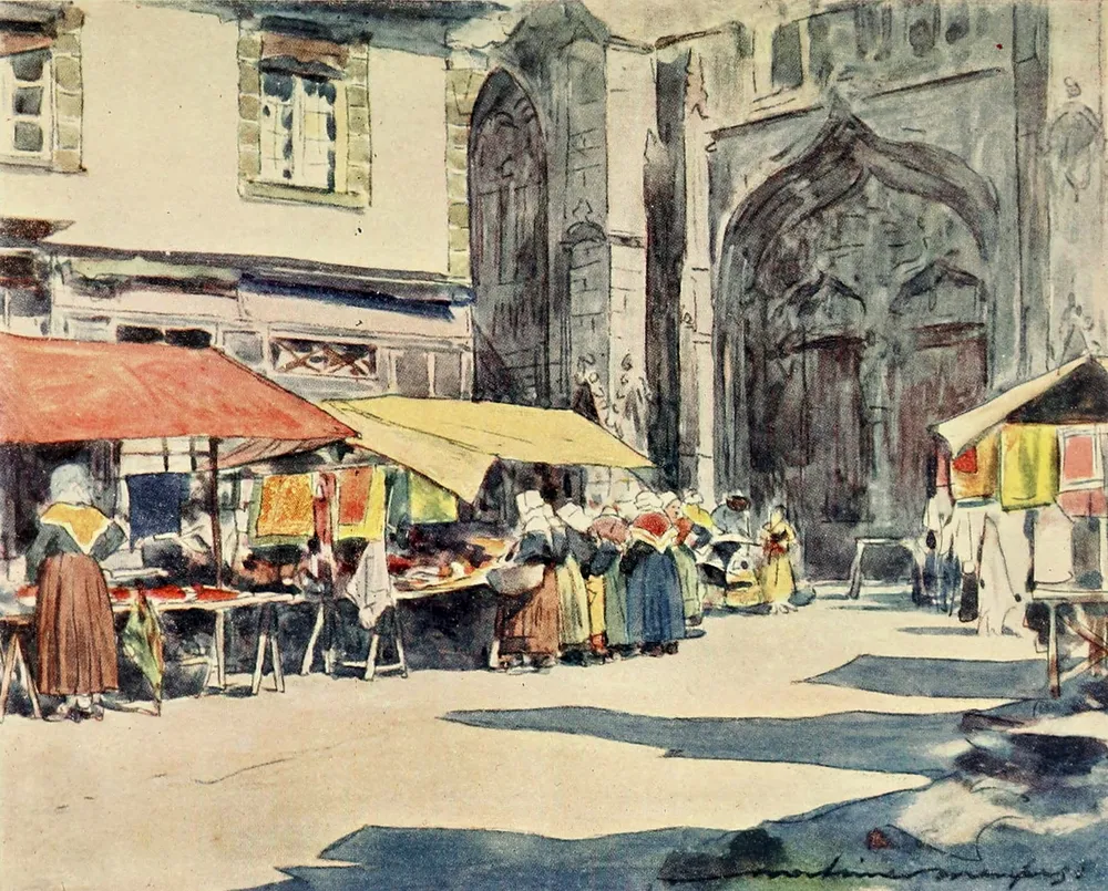 Brittany 1912 – Outside the Cathedral, Quimper by Mortimer Menpes
