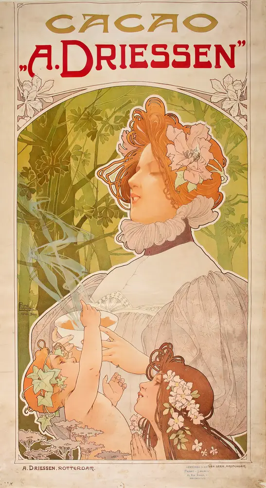 Cacao «A. Driessen» (1900) by Henri Privat-Livemont is presented as a Belgian fine art print in our 9 x 16 format. This piece sits within Art Nouveau, giving it a distinctive visual character that works well for curated home or office walls. The composition and period detail make it an easy choice for collectors who want art with presence and historical atmosphere.