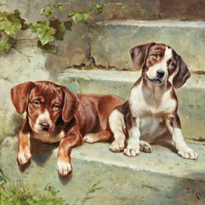 • Beagle Puppies Feasting by Carl Reichert