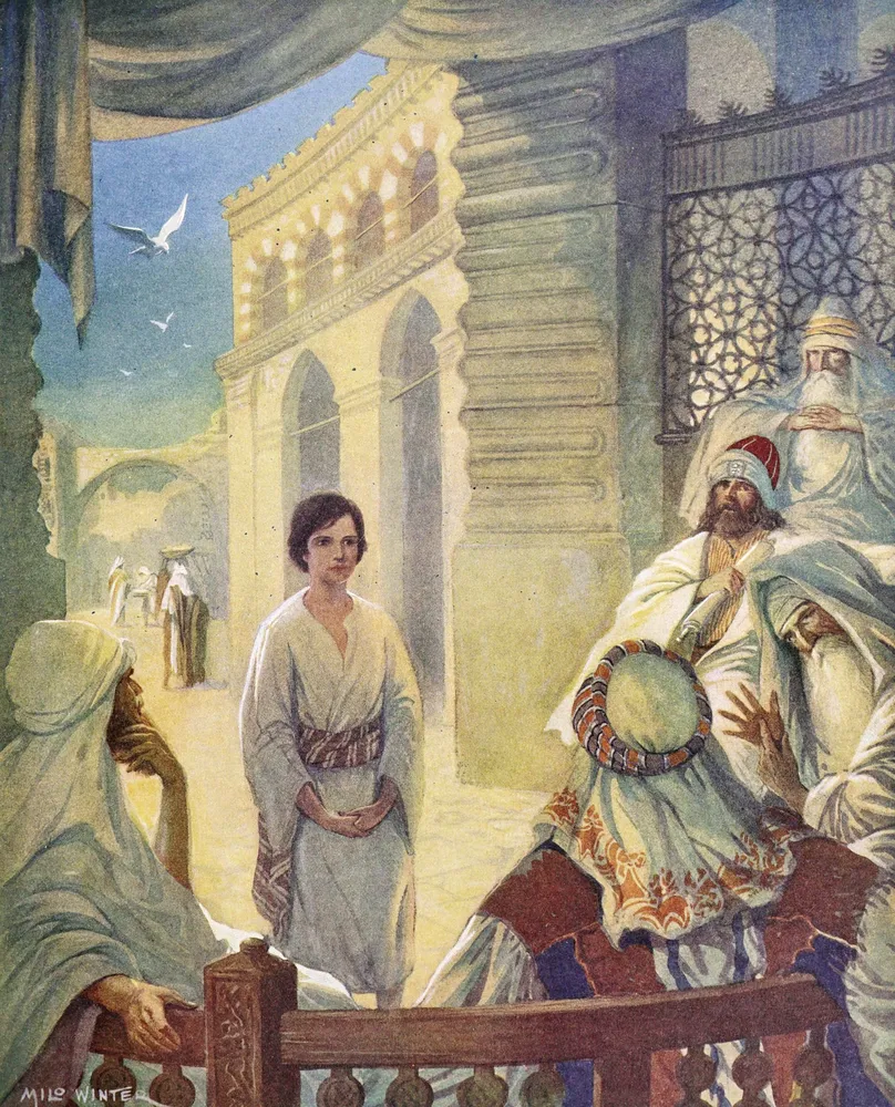Winter, Milo (1888-1956) – Bible Stories 1925 – Christ in the Temple by Milo Winter is offered as an illustration fine art print from England in our 11 x 14 format. This piece brings classic gallery character to wall decor, with the artwork prepared for a refined canvas presentation.