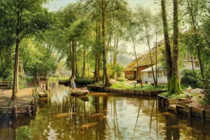 • Flusslandschaft im Spreewald (1912) by Peder Mørk Mønsted