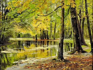 • Efterårsparti Fra En Sø, I Forgrunden Kastanietræ (1889) by Peder Mørk Mønsted