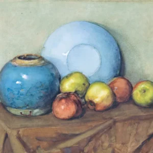 • Appels, ronde pot en plaat op een tafel (circa 1901) by Piet Mondrian
