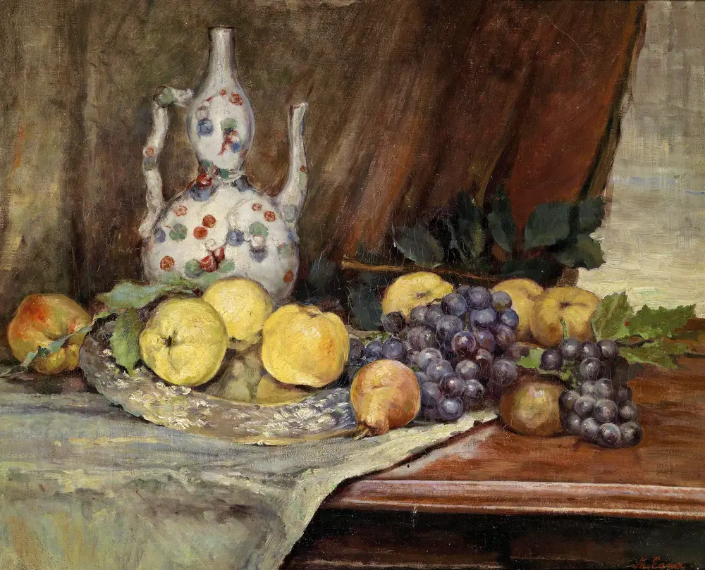 Früchtestillleben mit Kanne by Marie Egner turns its named subject into the clear focal point of the composition. The title gives the work a distinct identity, helping it read as a specific image with its own mood rather than a generic decorative print. Egner’s work is prized for atmosphere, shifting light, and a deeply felt response to landscape. It also fits atmospheric impressionism, where light, weather, and tonal transition matter as much as clear contour. Presented here in our 5 x 6 fine art collection, it is designed to bring a more considered gallery feel to home or office walls.