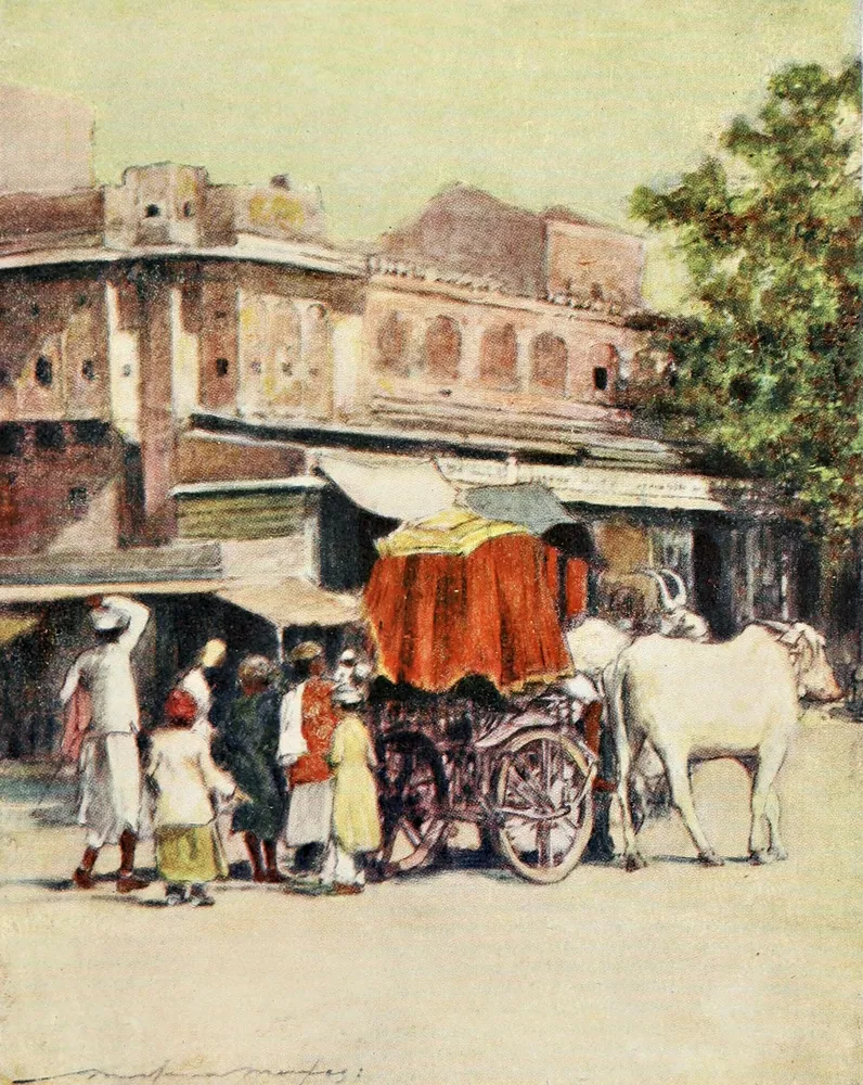 Menpes, Mortimer (1855-1938) – India 1910 – A native bullock cart by Mortimer Menpes is offered as an illustration fine art print from England in our 11 x 14 format. This piece brings classic gallery character to wall decor, with the artwork prepared for a refined canvas presentation.