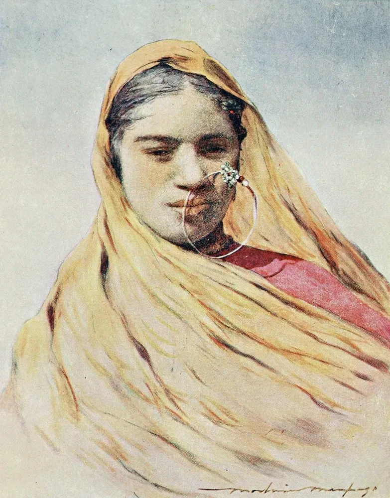 India 1910 – A native woman wearing a nose ornament by Mortimer Menpes