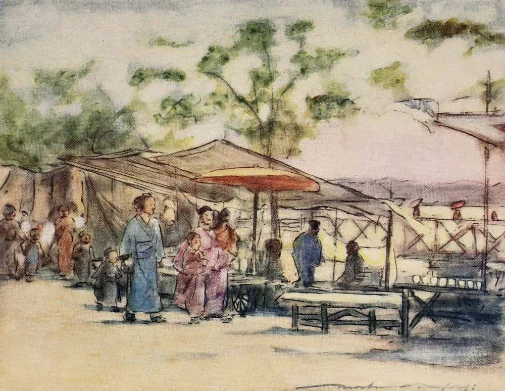Japan 1901 – End of the day at the festival by Mortimer Menpes