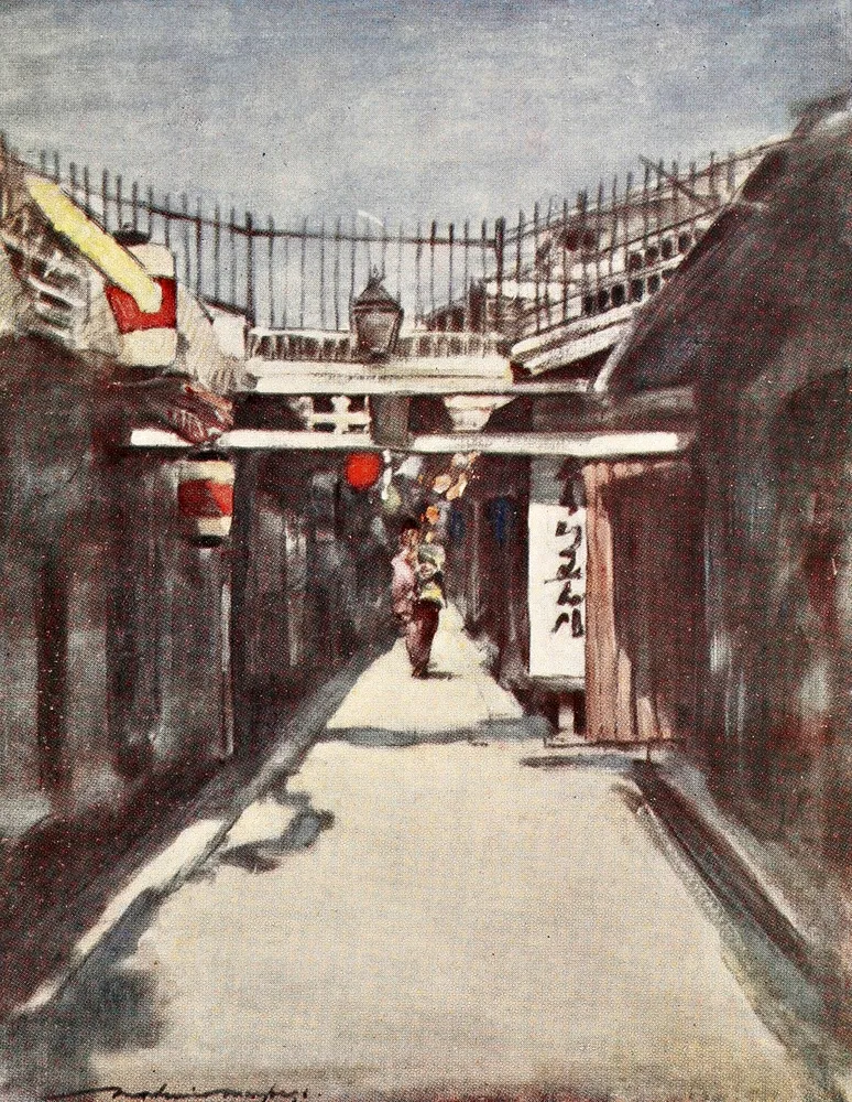 Japan 1901 – The street with the gallery by Mortimer Menpes