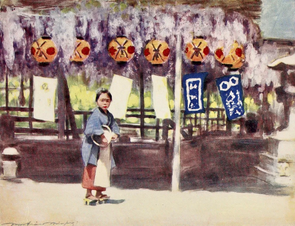 Menpes, Mortimer (1855-1938) – Japan 1901 – Wisteria by Mortimer Menpes is offered as an illustration fine art print from England in our 4 x 3 format. This piece brings classic gallery character to wall decor, with the artwork prepared for a refined canvas presentation.