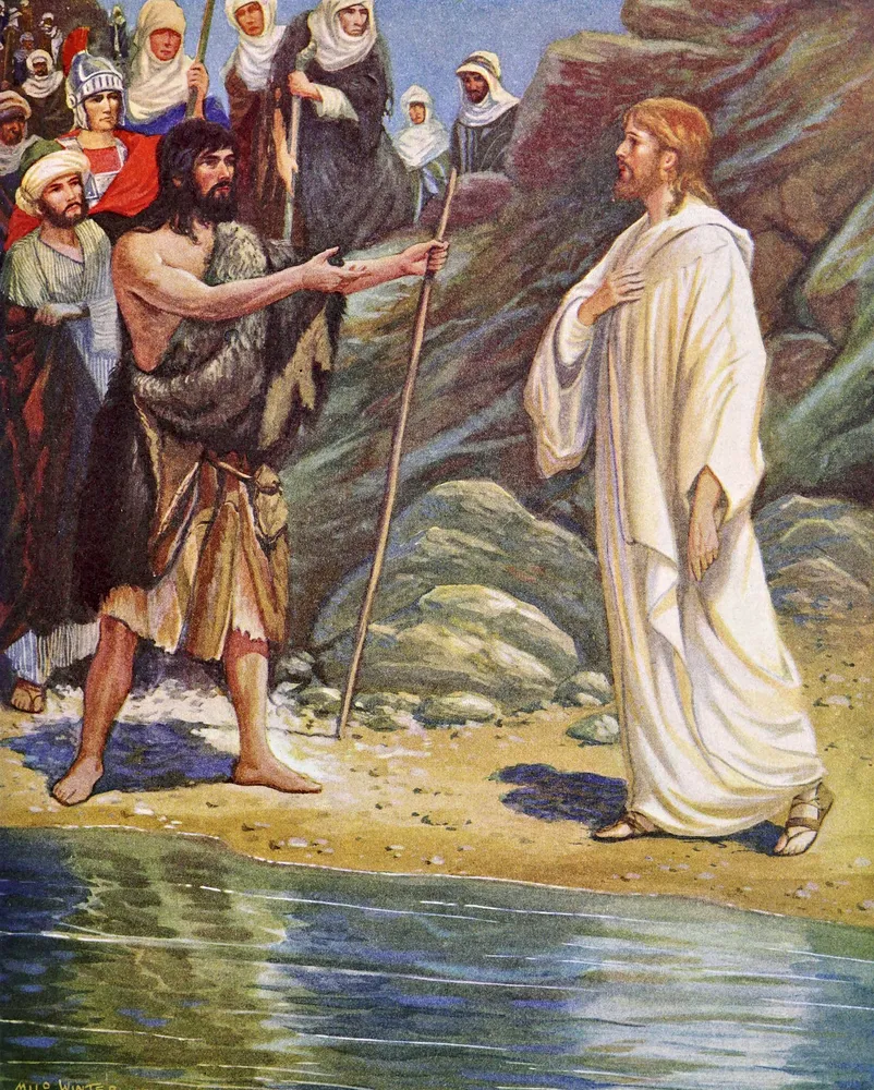 Winter, Milo (1888-1956) – Bible Stories 1925 – Jesus to be baptised by Milo Winter is offered as an illustration fine art print from England in our 11 x 14 format. This piece brings classic gallery character to wall decor, with the artwork prepared for a refined canvas presentation.
