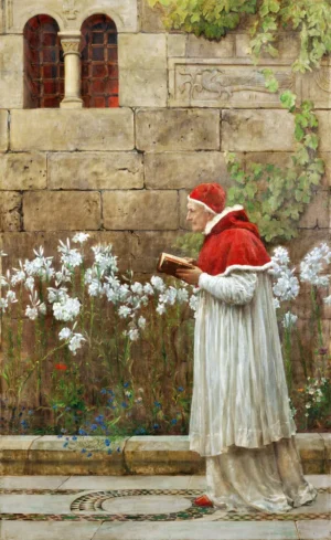 • Portrait of a lady in pink carrying a bowl of pink carnations by John Collier