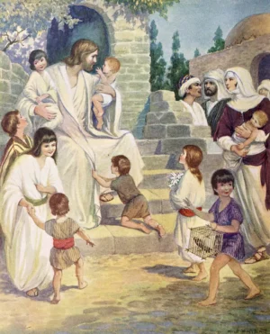 Christ blessing children by Milo Winter