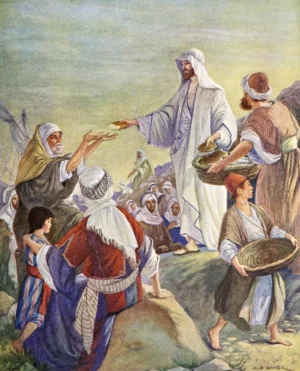 Jesus feeds 5000 by Milo Winter