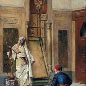 • A musician and a guardsman in an oriental interior by Ludwig Deutsch