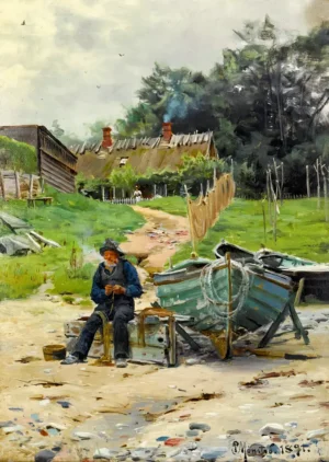 • Mending The Nets (1891) by Peder Mørk Mønsted