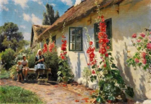 • Springtime in a Rustic Garden (1923) by Peder Mørk Mønsted