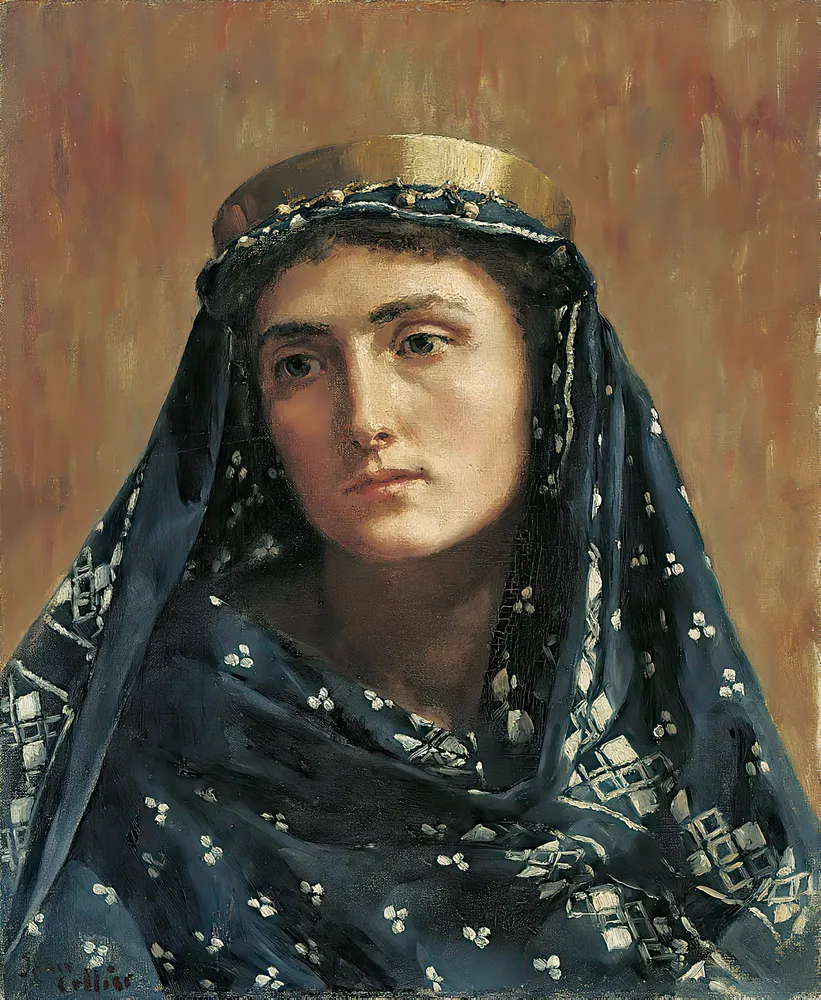 Portrait of a lady in eastern dress by John Collier is offered as a figurative fine art print from England in our 5 x 6 format. This piece brings classic gallery character to wall decor, with the artwork prepared for a refined canvas presentation.