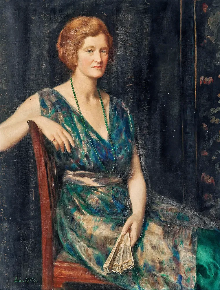 Portrait of a lady, thought to be Mrs Geoffrey Pynam of Guildford by John Collier