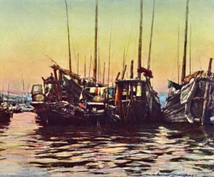 China 1909 – Junks at eventide by Mortimer Menpes