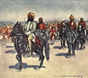 The Durbar 1903 – Horsemen in native retainer review by Mortimer Menpes