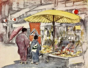 Japan 1901 – The stall by the bridge by Mortimer Menpes