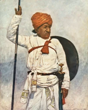 The People of India 1910 – An armed retainer of the Bombay Chiefs by Mortimer Menpes