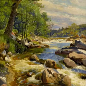 A Fast Flowing River (1894) by Peder Mørk Mønsted