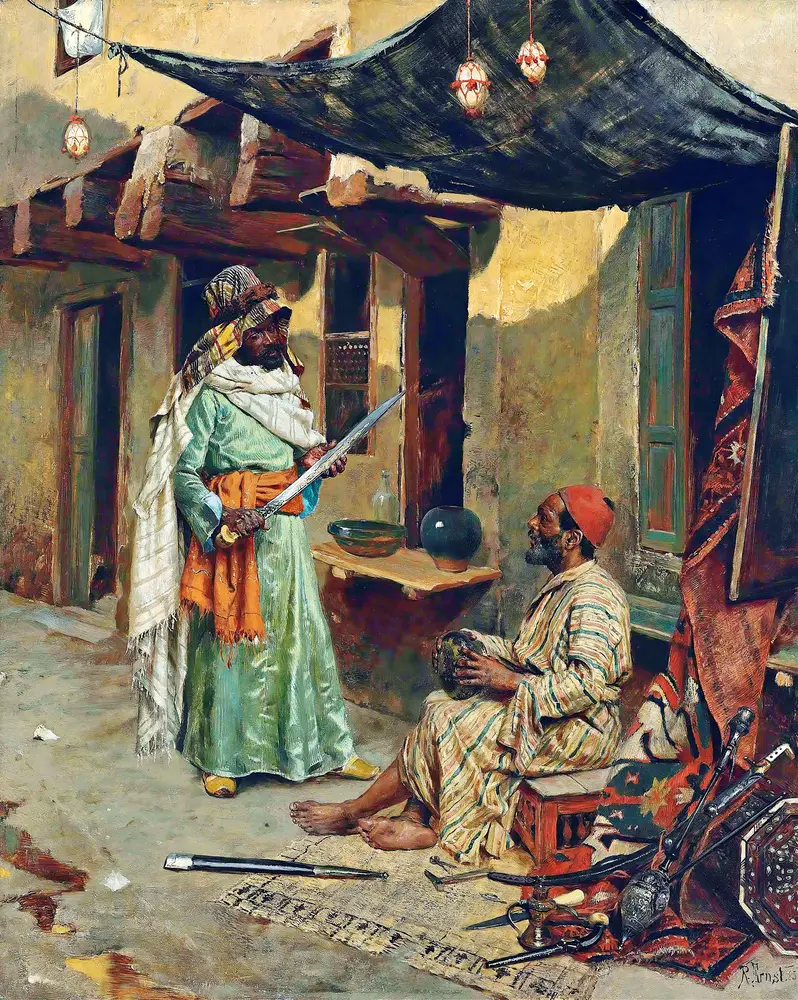 The Arms Merchant by Rudolf Ernst turns its named subject into the clear focal point of the composition. The title suggests a scene defined by setting and mood, where objects, architecture, and figure work together to create atmosphere. Ernst is known for decorative detail, architectural richness, and scenes built around atmosphere and surface. That sensibility aligns naturally with Orientalist painting, where costume, texture, setting, and atmosphere all contribute to the effect. Presented here in our 11 X 14 fine art collection, it is designed to bring a more considered gallery feel to home or office walls.