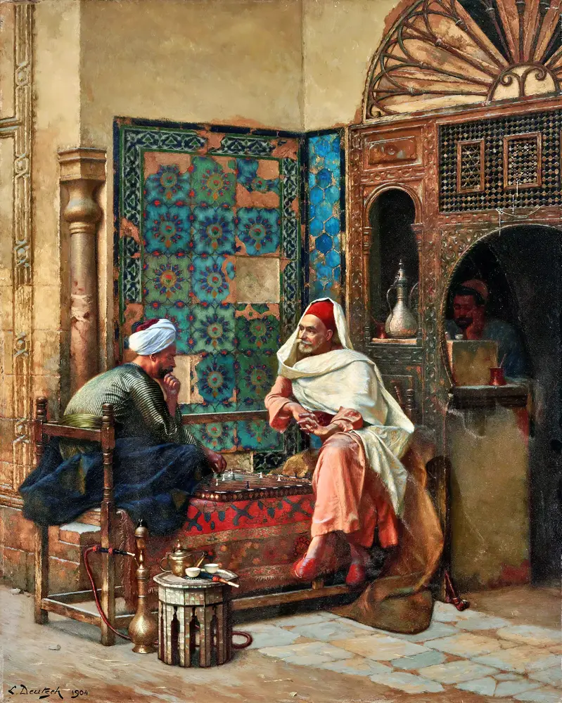 The Chess Players by Ludwig Deutsch turns its named subject into the clear focal point of the composition. The title gives the work a distinct identity, helping it read as a specific image with its own mood rather than a generic decorative print. Deutsch is celebrated for meticulous detail and the luminous theatrical finish of his Orientalist figure scenes. That sensibility aligns naturally with Orientalist painting, where costume, texture, setting, and atmosphere all contribute to the effect. Presented here in our 11 X 14 fine art collection, it is designed to bring a more considered gallery feel to home or office walls.