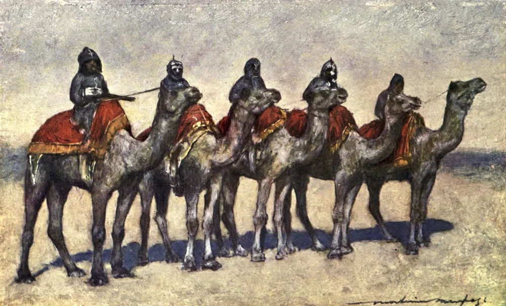 The Durbar 1903 – Armed camel-riders from Bikanir by Mortimer Menpes