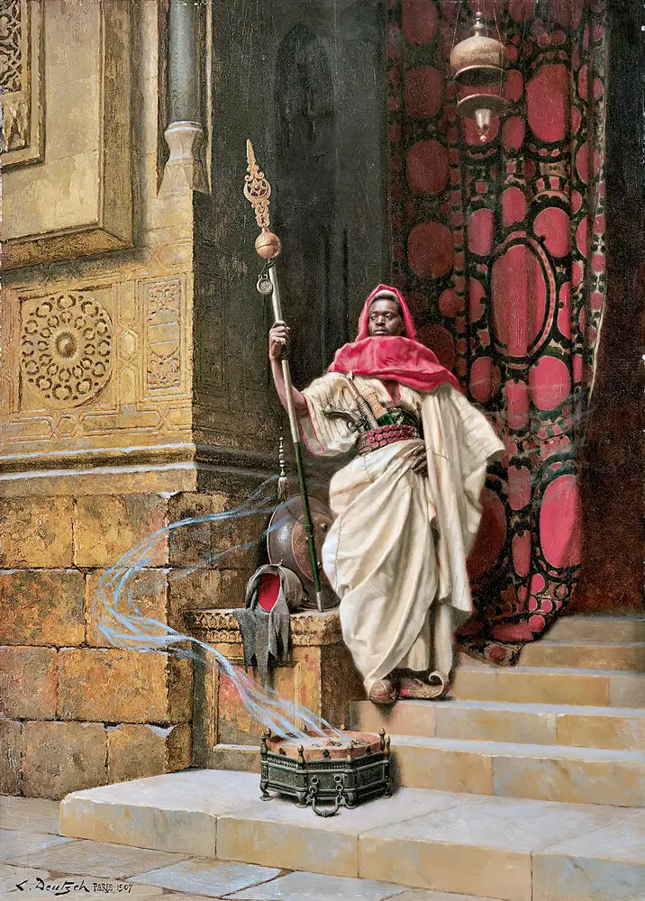 The Guard by Ludwig Deutsch turns its named subject into the clear focal point of the composition. The title suggests a scene defined by setting and mood, where objects, architecture, and figure work together to create atmosphere. Deutsch is celebrated for meticulous detail and the luminous theatrical finish of his Orientalist figure scenes. That sensibility aligns naturally with Orientalist painting, where costume, texture, setting, and atmosphere all contribute to the effect. Presented here in our 5 x 7 fine art collection, it is designed to bring a more considered gallery feel to home or office walls.