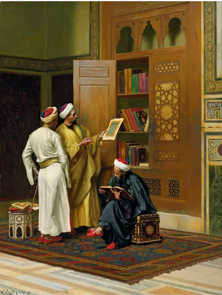 The Scholars by Ludwig Deutsch turns its named subject into the clear focal point of the composition. The title gives the work a distinct identity, helping it read as a specific image with its own mood rather than a generic decorative print. Deutsch is celebrated for meticulous detail and the luminous theatrical finish of his Orientalist figure scenes. That sensibility aligns naturally with Orientalist painting, where costume, texture, setting, and atmosphere all contribute to the effect. Presented here in our 3 x 4 fine art collection, it is designed to bring a more considered gallery feel to home or office walls.