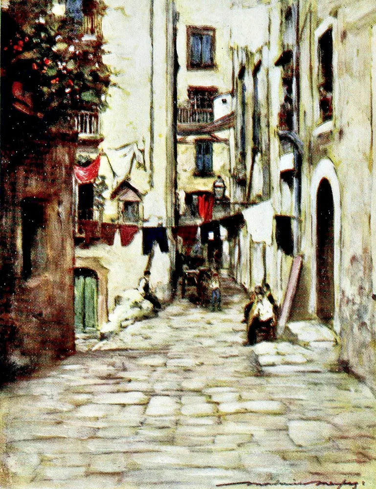 Menpes, Mortimer (1855-1938) – World Pictures 1902 – Street in Naples, Italy by Mortimer Menpes is offered as an illustration fine art print from England in our 11 x 14 format. This piece brings classic gallery character to wall decor, with the artwork prepared for a refined canvas presentation.